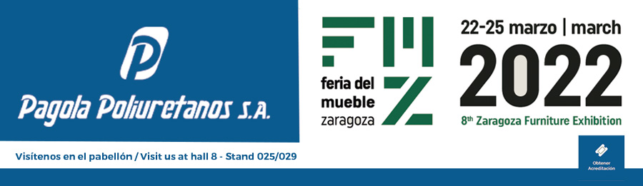 Durante los días 22 al 25 de marzo, Pagola Poliuretanos estará presente en la 8ª Zaragoza Furniture Exhibition, la feria del Mueble que tendrá lugar en Zaragoza y que está considerada como un referente del sector a nivel internacional.