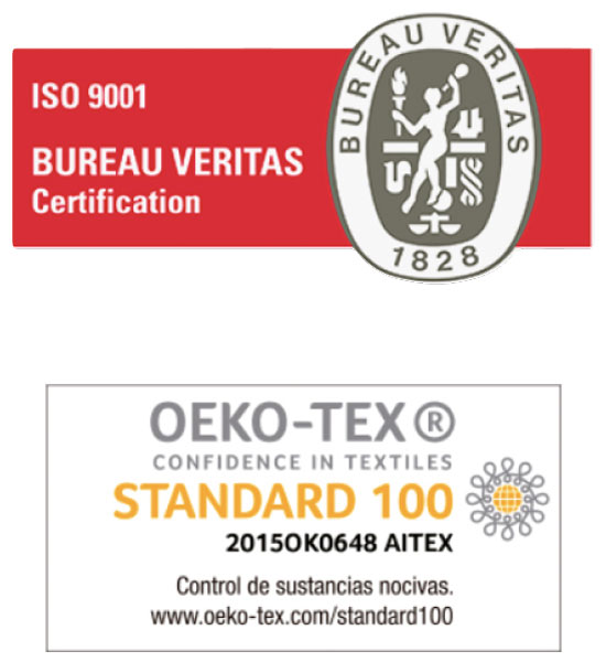 Si necesita de descargar nuestros certificados de OEKO-TEX o ISO 9001-2015 pulse sobre el sello correspondiente.